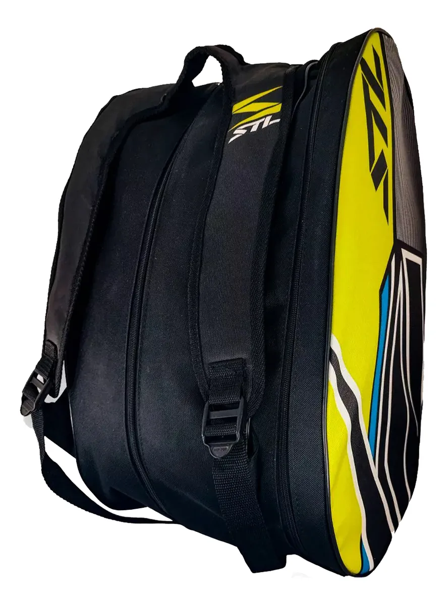 BOLSO PALETERO STEEL CUSTOM PADEL CLUB HOMBRE MUJER !!! COLORES: ROJO O AMARILLO CAPACIDAD MAXIIMA: 6 PALETAS COMPARTIMIENTO CENTRAL CON CIERRE BOLSILLO LATERAL XXL CON CIERRE
