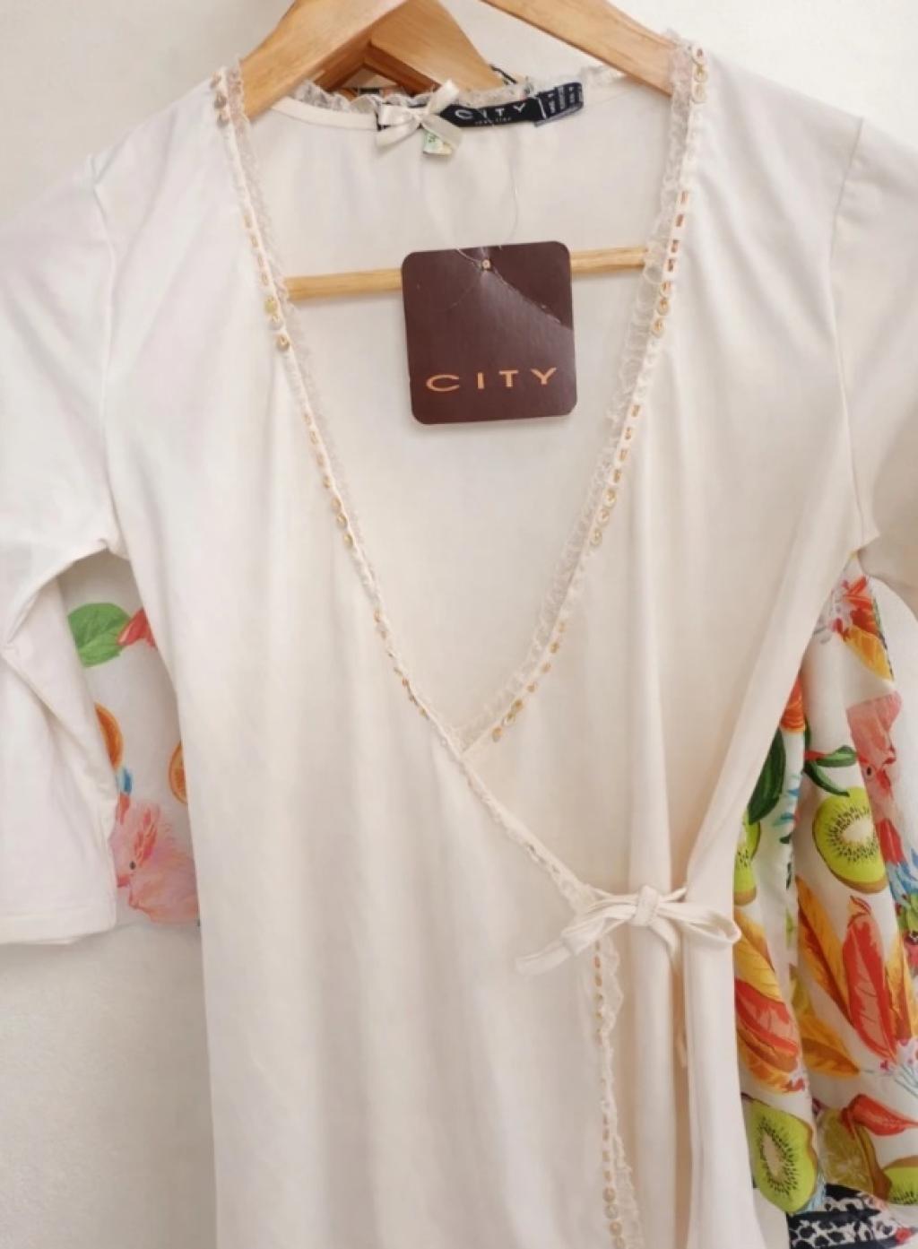 Blusa cruzada blanco hueso, Talle S
